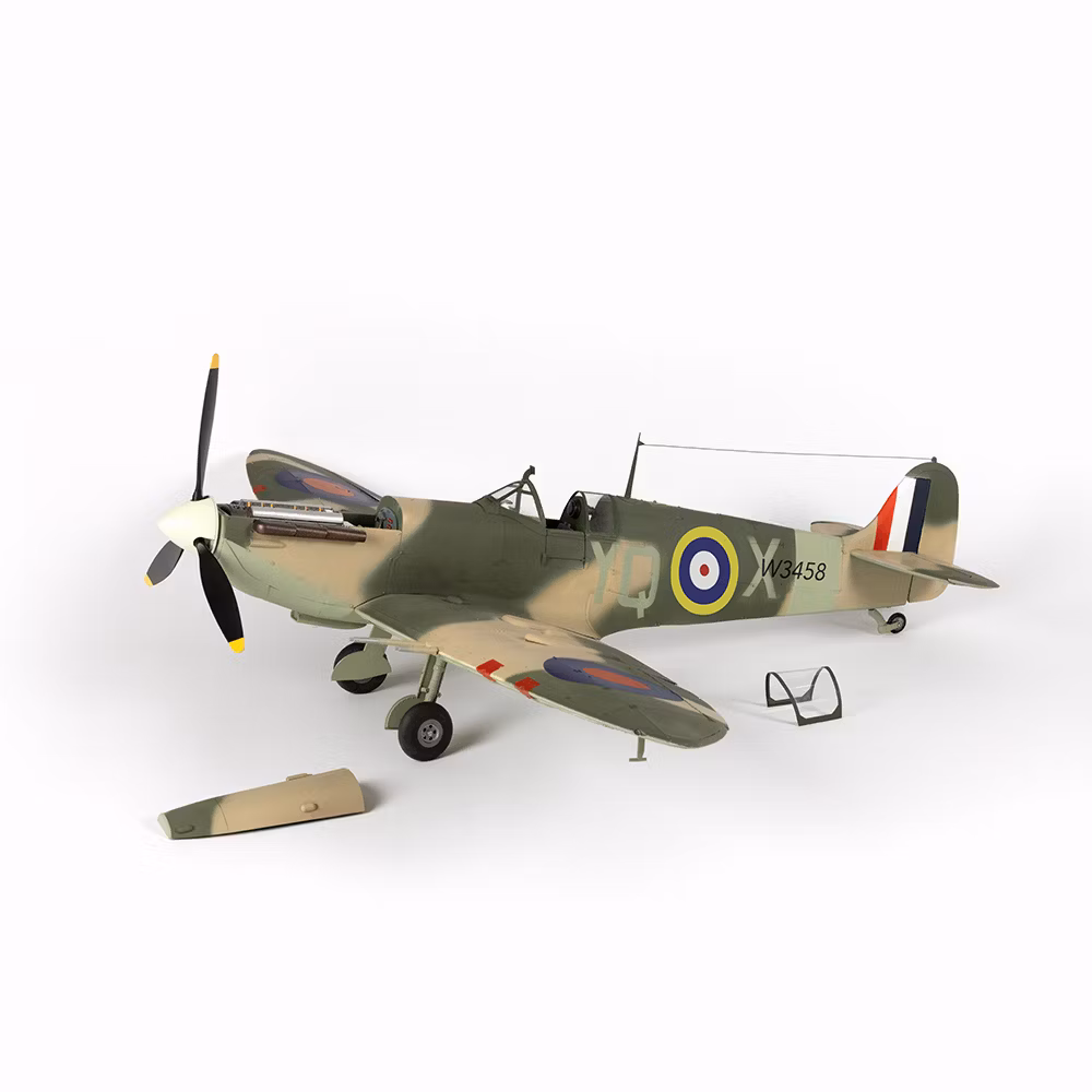 Macheta este replica celei mai fabricate variante a avionului Spitfire. Toate piesele sunt fabricate sub licenta de catre EMSE Publishing cu toate drepturile rezervate. Exteriorul reproduce aspectul clasic al modelului. Interiorul este fabricat din lemn, mdf, iar la exterior tabla de aluminiu, cu mici elemente de plastic, cauciuc, ABS si metal turnat sub presiune.