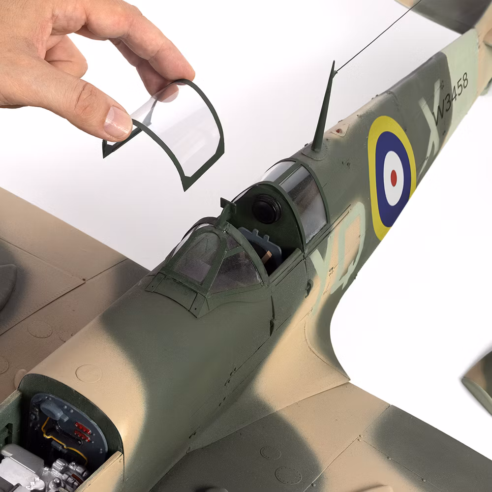 Macheta Supermarine Spitfire MkVb construibila reproduce modelul original in cele mai mici detalii, de la motor la interior pana la ultimul element de pe fuselaj. Dupa ce veti finaliza constructia pentru avionul Supermarine Spitfire MkVb veti avea o reproducere fidela la scara de 1:12. Fiecare parte a interiorului reproduce configuratia avionului real, chiar si trenul de aterizare este functional, rotile fiind mobile. Macheta Supermarine Spitfire MkVb are detalii de calitate exemplara reproducand fidel piesele originale. Carlinga postului de pilotaj se deschide, Elicea se invarte, palele isi modifica unghiul de atac, rotile se invart, trenul de aterizare este retractabil, intr-un cuvant ai o macheta Supermarine Spitfire MkVb originala model 1942 la scara 1:12.