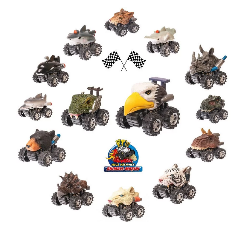 Tot pentru ei mosul vine cu colectia Animale - Masini. Colectia contine 14 modele diferite si reprezinta animale cu roti. Masinutele se pot misca prin tractiunea retroactiva. Clasic, ca atunci cand eram mici, pui masinuta pe jos, tragi in spate si pleaca singura in fata.