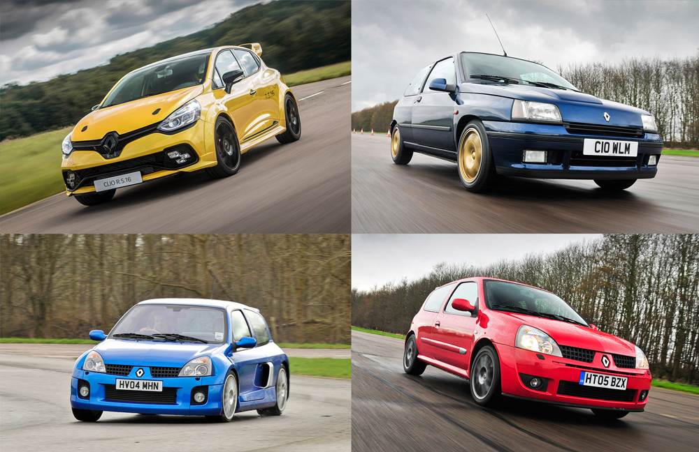 Primul model RS din gama Clio a aparut in 1998 si a avut un motor 2.0 aspirat cu 4 cilindrii si 170 de cai putere. Acest model a avut si submodele denumite 172, 172 Cup, 182, 182 Cup sau 182 Trophy, fiecare primind imbunatatiri de putere. Cu modelul din 2006, Clio RS a primit si o turbina si un motor revizuit tot de 2 litri insa puterea a ajuns la 200 de cai putere. A 4 a generatie de Clio a fost un salt foarte mare atat din punct de vedere al tehnologiei, cat si al calitatii si al designului. A fost perioada in care Renault a explodat din punctul asta de vedere si a ajuns sa creeze masini cu standarde asemanatoare masinilor mult mai scumpe. Renault Clio este cel mai vandut model din clasa sa. Motorul generatiei a 4-a a scazut din punct de vedere al cilindreei odata cu evolutia tehnologiei, astfel dintr-un motor 1.6 turbo, Renault Sport a scos tot 200 de cai putere sau 220 de cai putere din versiunea mai puternica numita RS Trophy. Ultima generatie de Clio care abia se lanseaza acum, nu are inca o versiune RS si nici vreo specificatie oficiala despre un presupus model sport.