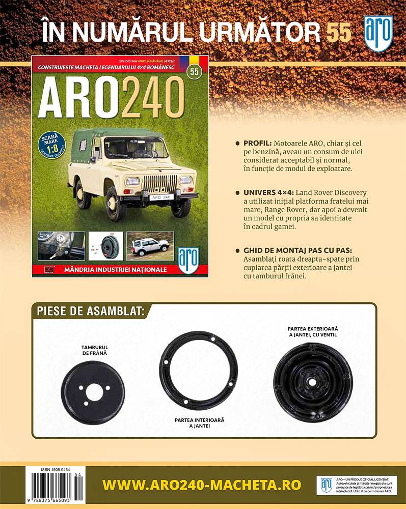 A venit momentul - chiar daca pe jumate - sa punem si ultima roata. In numarul 55 primim ultima janta si o parte din tambur. Janta este tot din doua piese formata, iar tamburul se monteaza pe interiorul jantei.