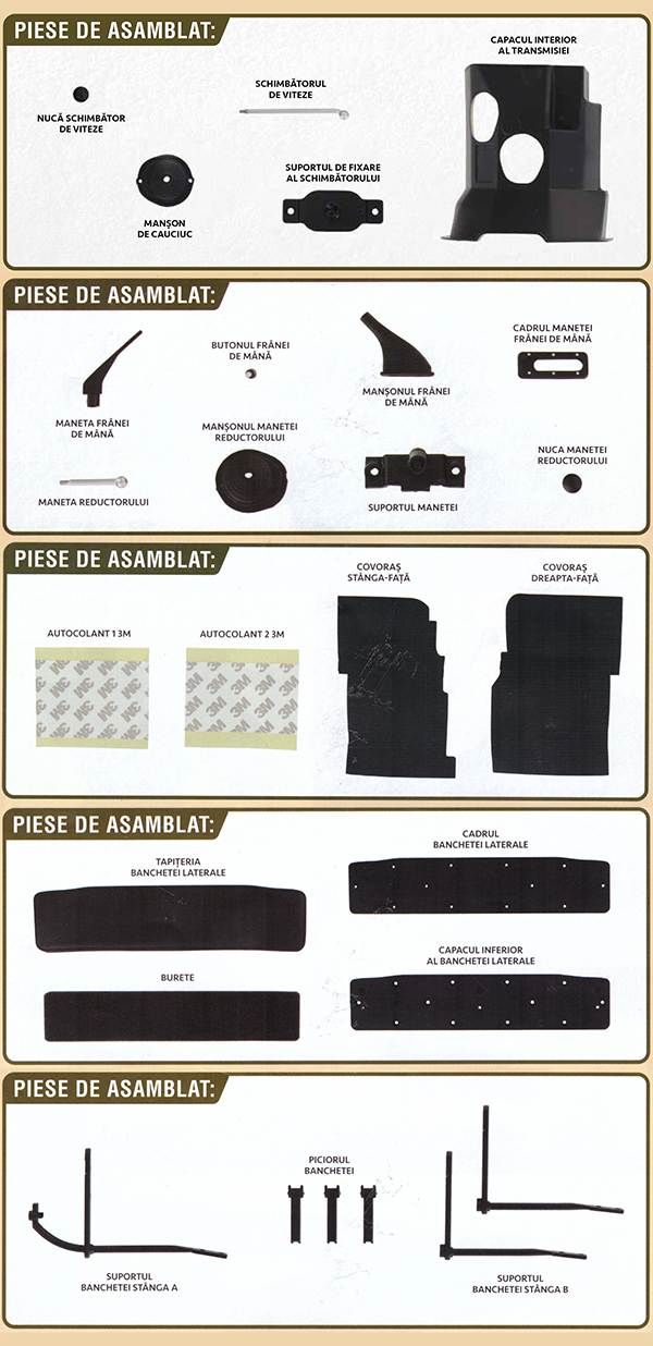 Hai ca daca stam bine sa ne gandim, nu mai e asa mult, imediat ajungem la numarul 100. Pana atunci vorbim despre pachetul 20 si ale sale 5 numere. Incepand cu numarul 81 ne ocupam de calul de pe mijloc, capacul care acopera transmisia si cuplajele tractiunii integrale. In numarul 82 montam a doua maneta cu burduf din cauciuc, fiecare maneta avand nuca ei si atasam capacul pe podea. Dupa ce prinde frumos contur, adaugam maneta de la frana de mana cu mansonul sau si butonul de actionare, iar ca sa fie toata podeaua "neagra", lipim presurile cauciucate la picioarele scaunelor din fata cu numarul 83. Primim prima bancheta spate care se completeaza cu muuulte suruburi in numarul 84 si ii formam scheletul cu care o prindem pe podea in numarul 85.