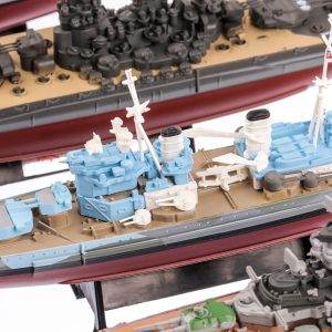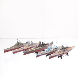 In contextul celor Doua Razboaie Mondiale, o buna parte a luptelor s-a desfasurat in zona maritima. Cum era de asteptat nu au intarziat sa apara si colectiile de machete de nave de lupta compuse in general din crucisatoare, distrugatoare, cuirasate si portavioane. Acum pe rafturile magazinului puteti gasi machete de nave de lupta din 2 colectii: Colectia de nave de Razboi din al-II-lea Razboi Mondial de la Amercom la scara 1:1000 si Colectia de nave de lupta de la Deagostini la scara 1:1250. Machetele sunt fabricate din metal (partea de jos) cu mici parti din plastic (suportul si partea de sus a navei). Va invitam sa vizitati rafturile magazinului, unde veti putea gasi machetele navelor de lupta din acea perioada.