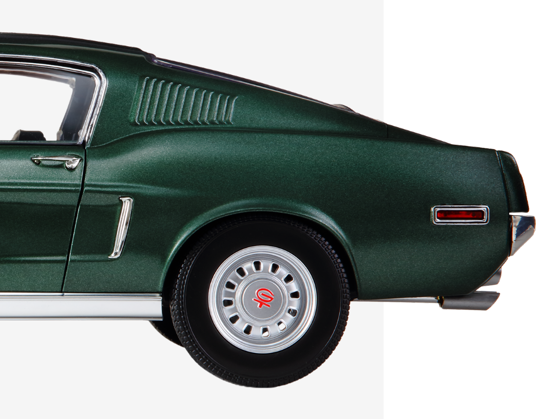 Macheta este replica masinii Ford Mustang GT 390 Fastback din filmul "Bullitt", toate piesele sunt fabricate sub licenta “Ford”.