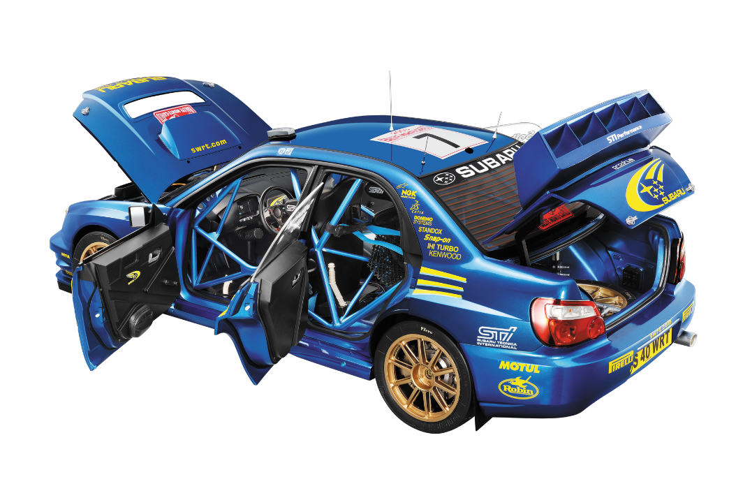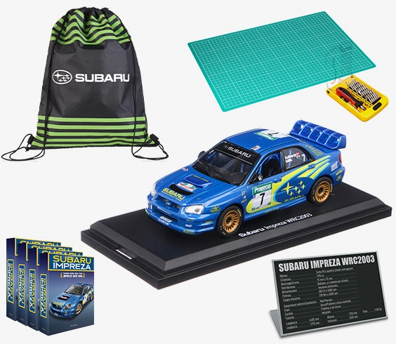 Macheta este replica masinii Subaru Impreza WRC 2003, toate piesele sunt fabricate sub licenta Subaru cu toate drepturile rezervate.